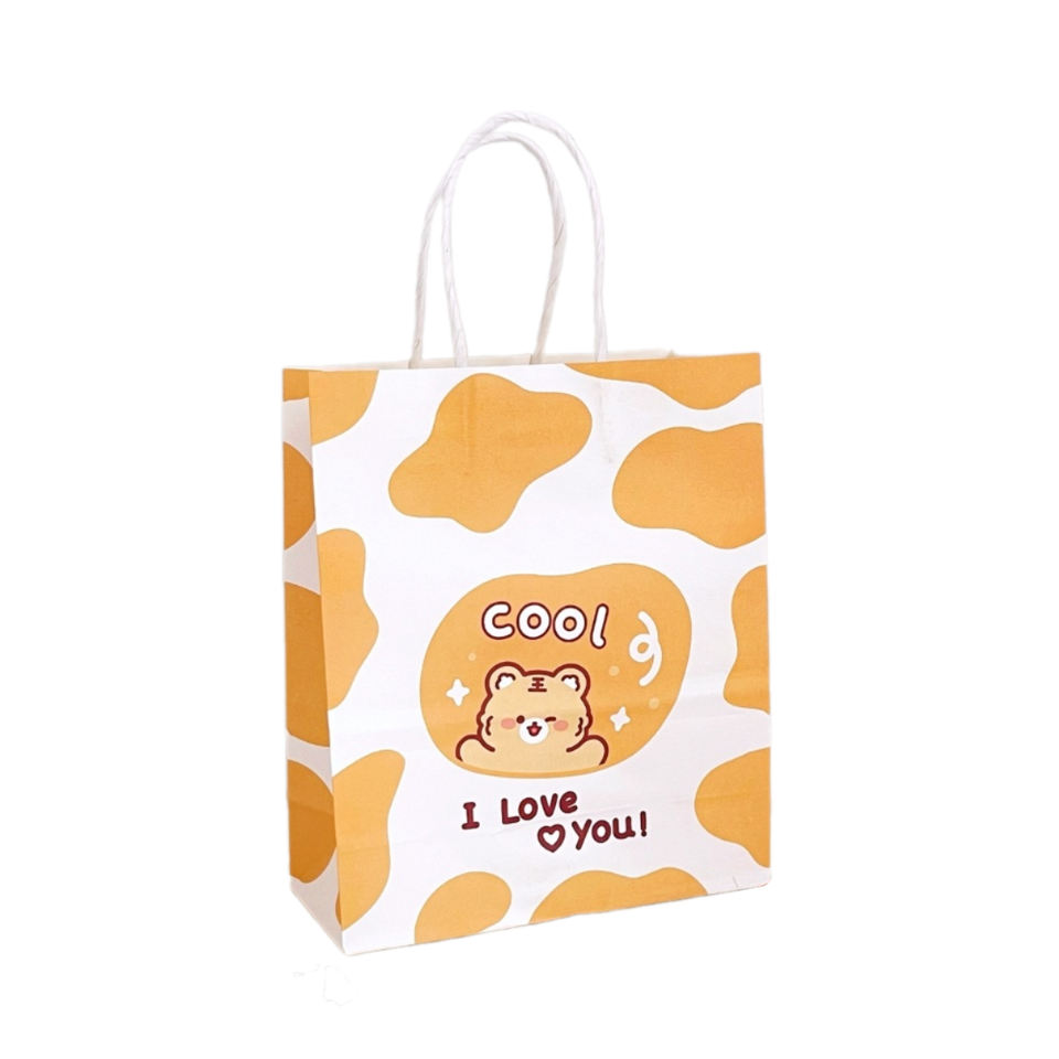 Cute Animal Printed Gift Paper Bags with Cow, Cat, Bear Patterns - Eco-Friendly Packaging for Kids & Parties (Yellow)
