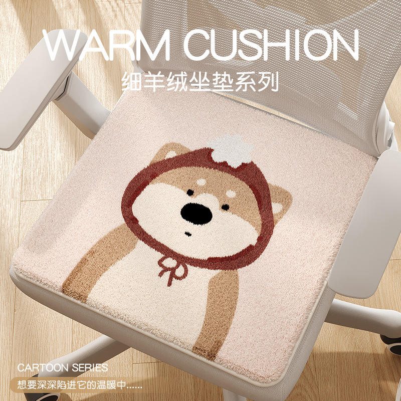 Cute Animal Seat Cushion Imitation Cashmere Non Slip Office Chair Pad For Living Room Bedroom Study
