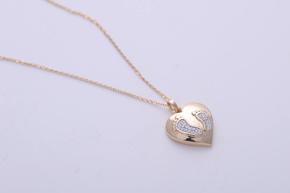 Cute Baby Feet Heart Pendant Necklace Diamond Inlay Rhodium Plated Customized Color Mom Gift Jewelry Solid 925 Sterling Silver