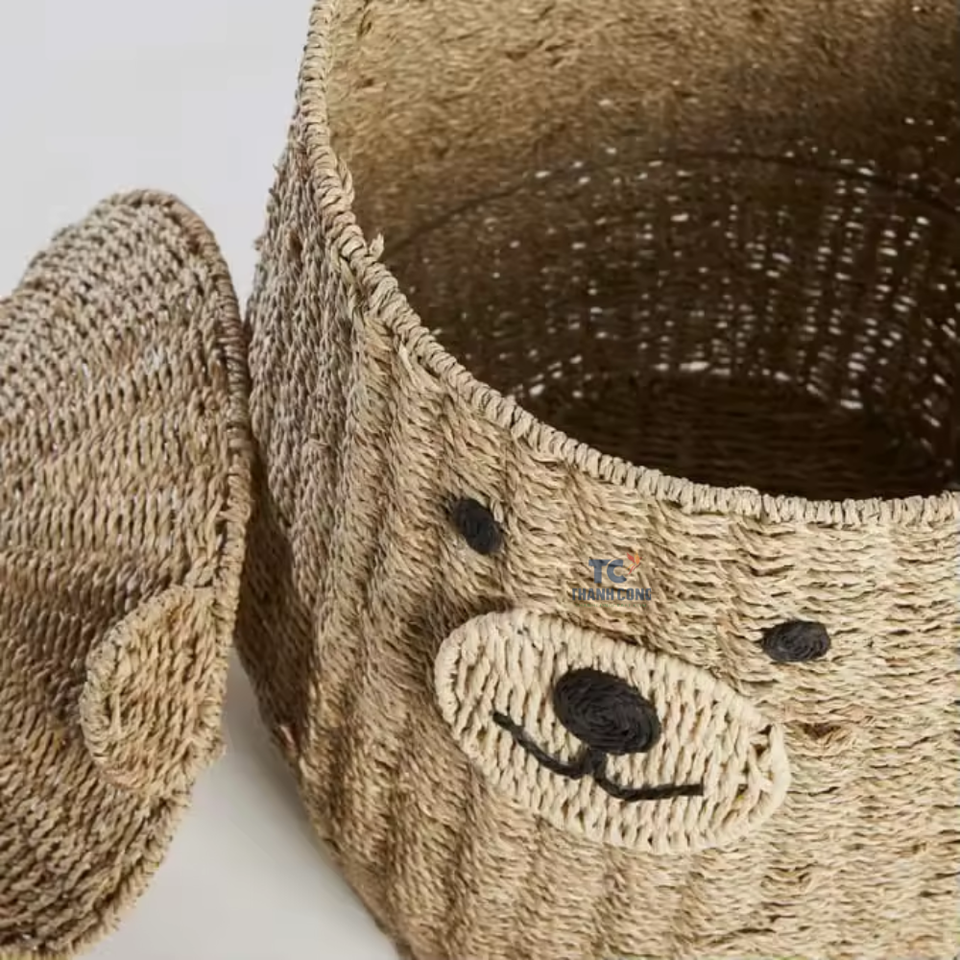 Cute Bear Shape Baby Storage Basket Seagrass Basket Storage Organizer for Kid Storage Toy Clothes