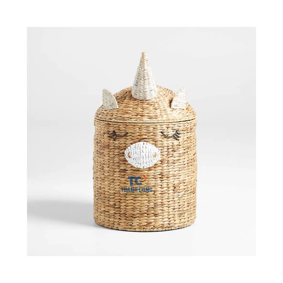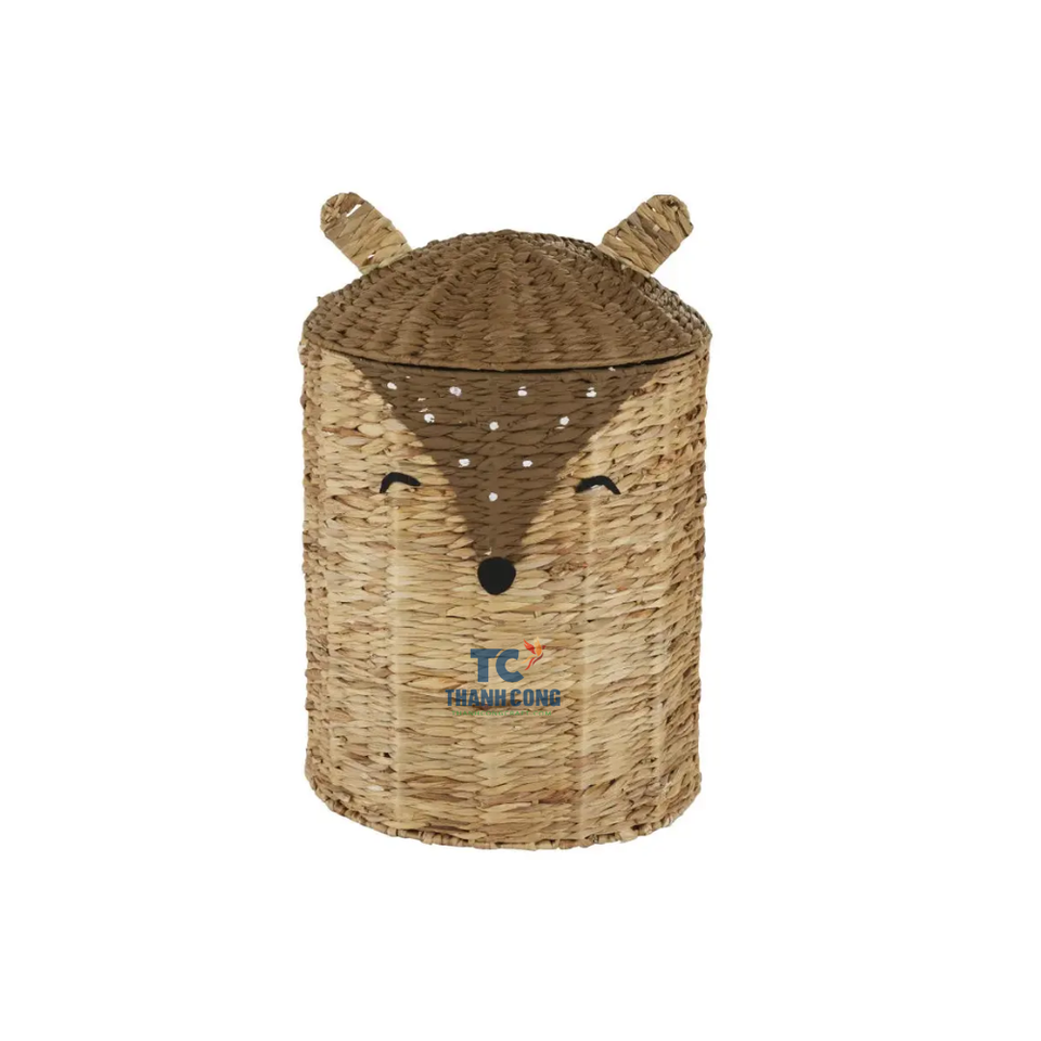 Cute Bear Shaped Storage Basket Handcrafted Animal Hamper Woven Water Hyacinth Storage Basket for Kids Toys Organizer