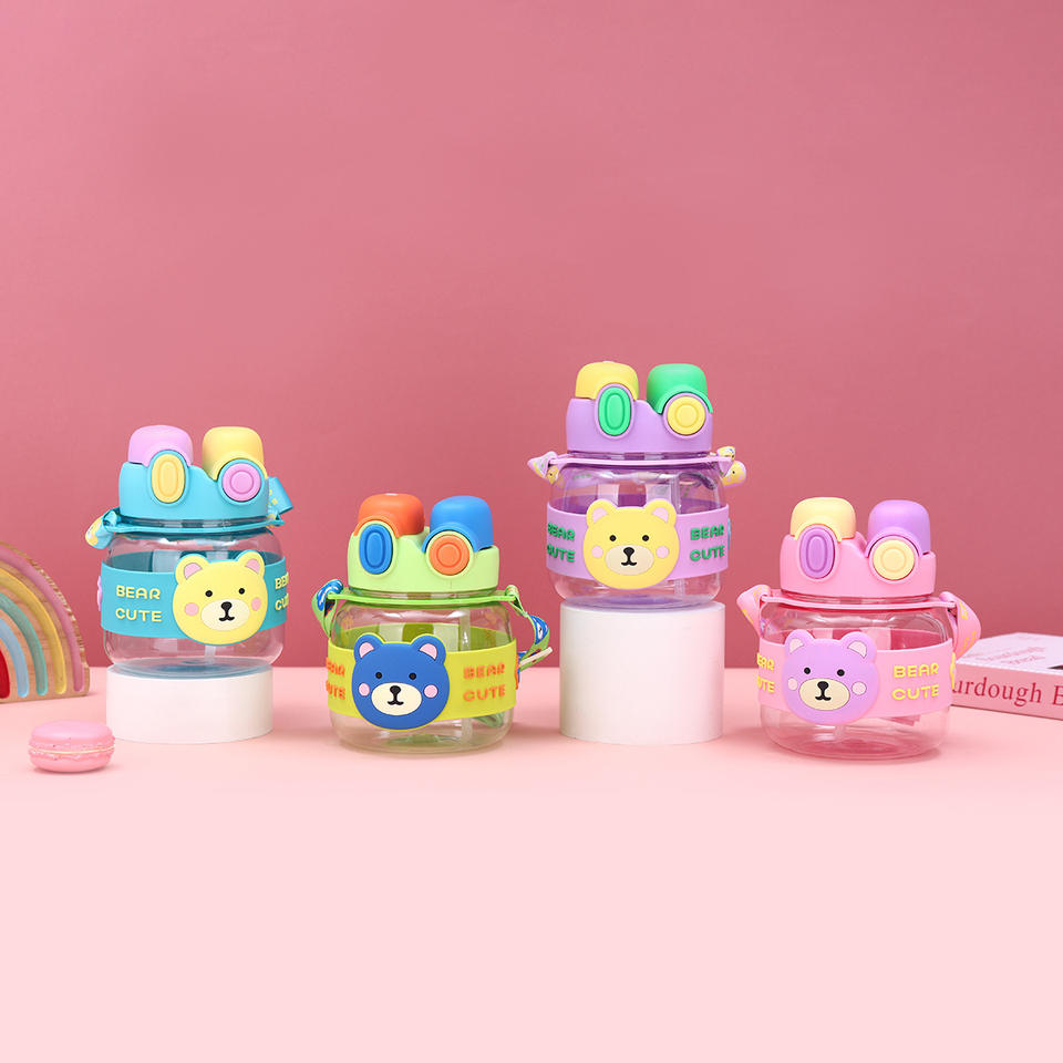 Cute Bear plastic Water Bottle wholesale 1 Litre With Straw cup for Kids Plastic Milk Tea Juice Travel Drink child drink bottle