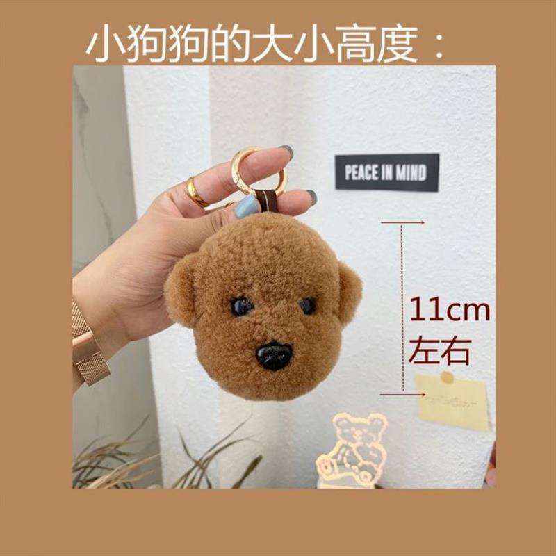 Cute Bichon Teddy Dog Plush Keychain Bag Pendant Lamb Hair White Cartoon Car Keyring Accessories Stuffed Animal Head Plush