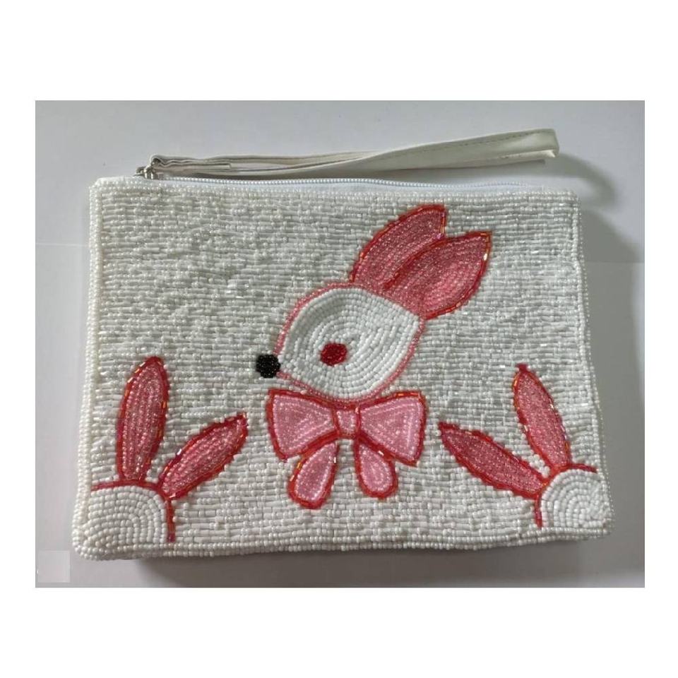 Cute Bunny Easter Seed Bead Cotton Fabric Mini Coin Purse High Quality Durable Zipper Closure Small Women's Gift