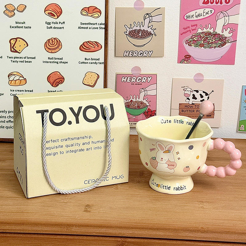 Cute Cartoon Ceramic Mug With Beaded Handle Rabbit And Dog Design For Girls Gift Present Occasion