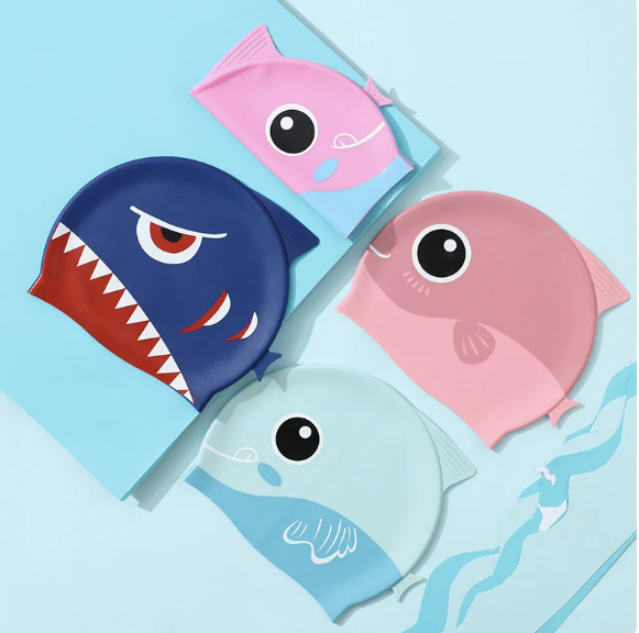 Colorful Silicone Kids Swim Caps in Bulk Fun Cartoon Designs and Custom Logo Durable and for Children