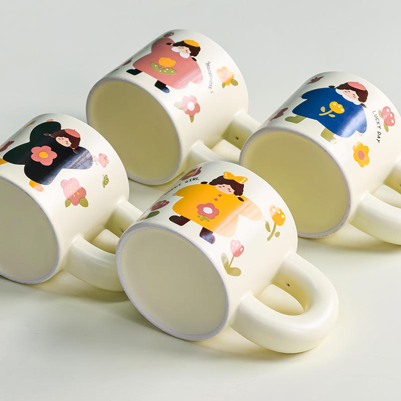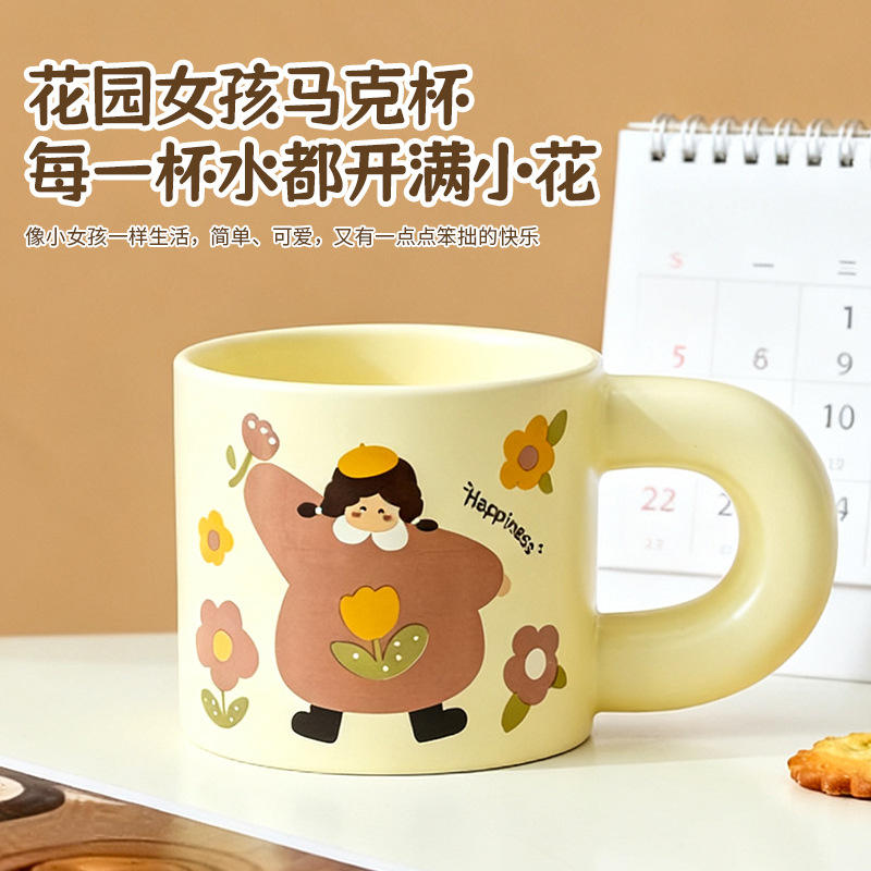 Cute Cartoon Girl Pattern Ceramic Mug Retro Design Art Mug For Daily Use And Gifts