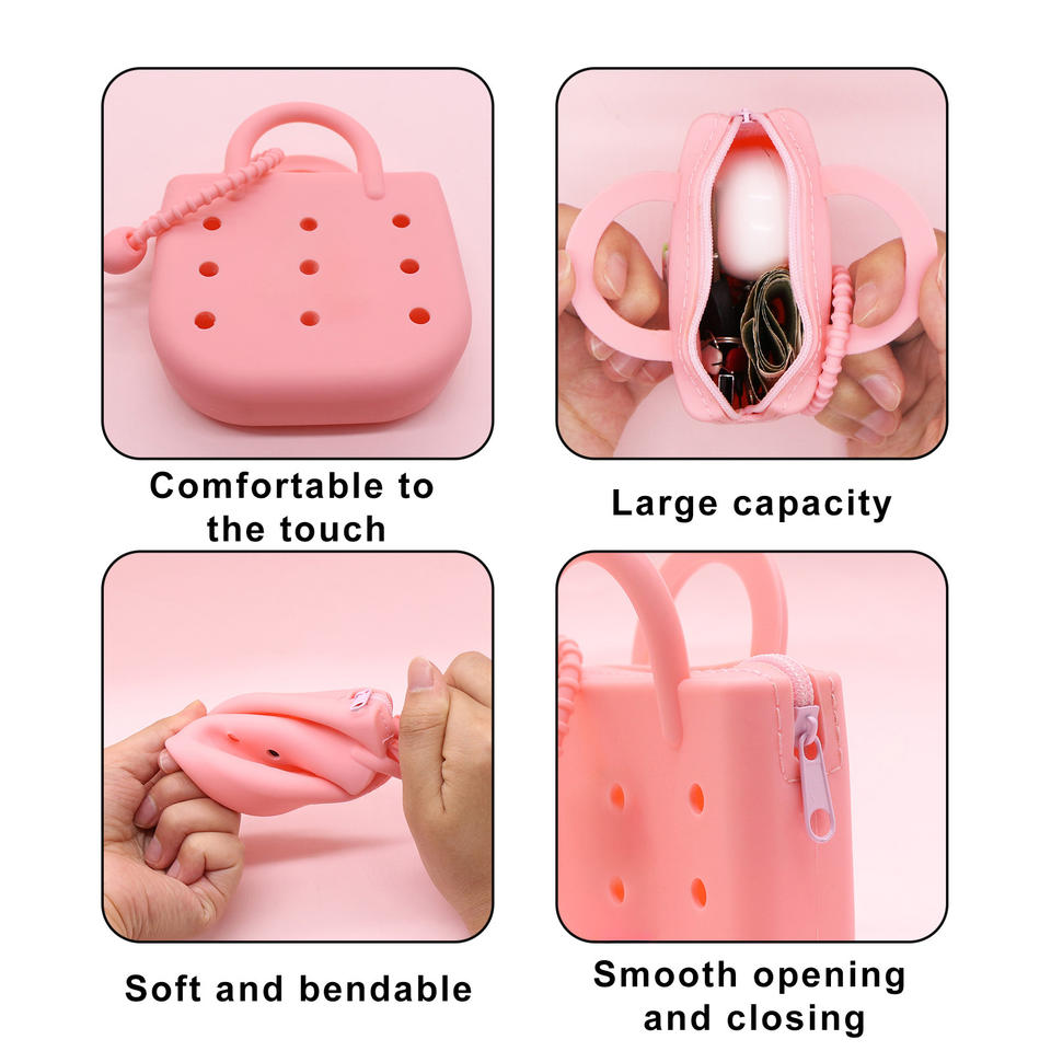 Cute Cartoon Pattern Silicone Keychain Mini Sling Bag with Holes for Kids Unisex Outdoor Storage