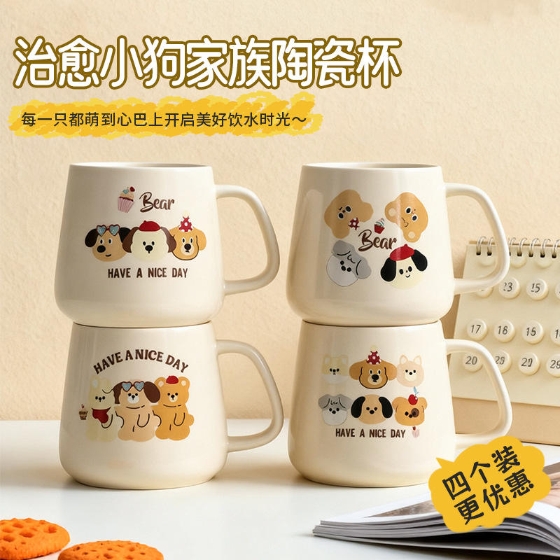 Cute Cartoon Puppy Ceramic Mugs Set Of Four Home Coffee Cups Instagram Style Gift For Her Him