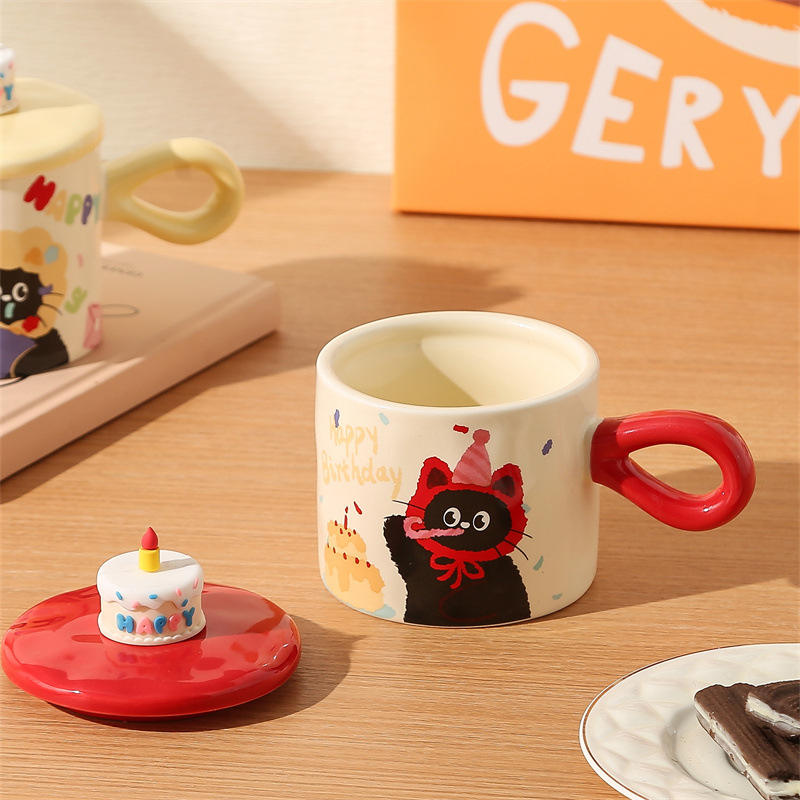 Cute Cat Ceramic Mug With Lid Birthday Gift Coffee Breakfast Milk Cup Animal Pattern General Use