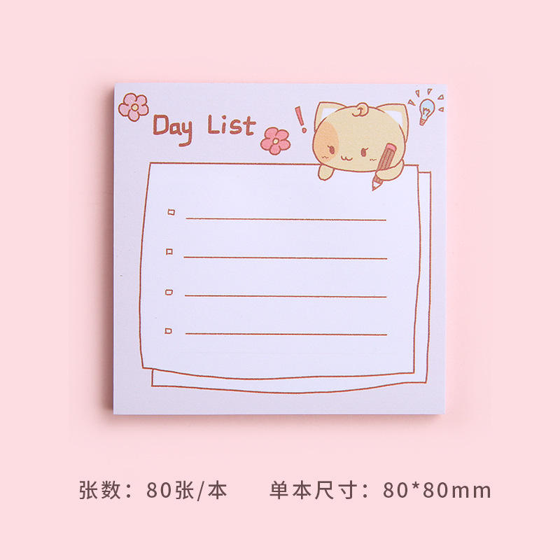 Cute Cat Style Self-Adhesive Sticky Notes for Students-80 Sheets Customizable Colors & Designs Note Pad & Notebook