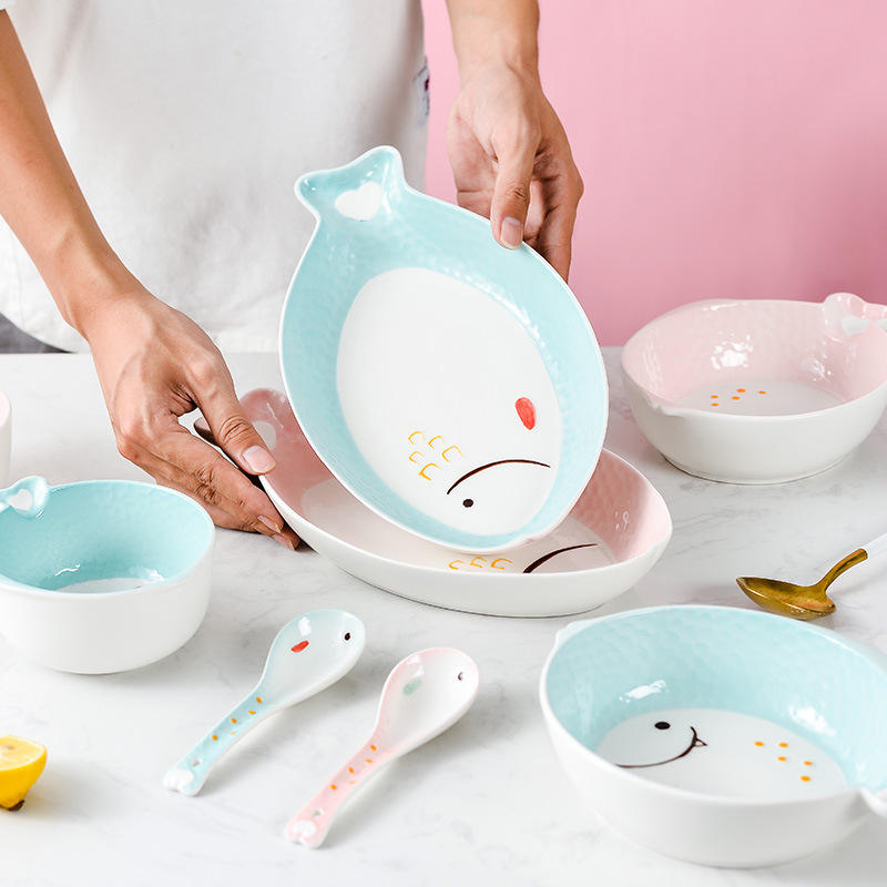 Cute Ceramic Bowl Set For Single Meals Japanese Style Tableware With Spoon Home Use Personal Gift