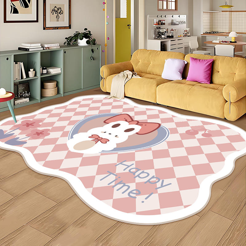 Cute Checkered Rabbit Area Rug For Living Room Bedroom Novelty Shape Imitation Cashmere Soft Cushioned Floor Mat Happy Time