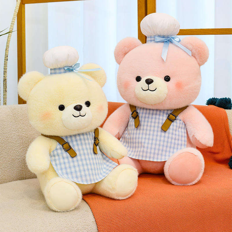 Cute Chef Bear Plush Toy Doll Washed Comfort Pillow for Children's Bed or Stress Relief Birthday Gift for Women