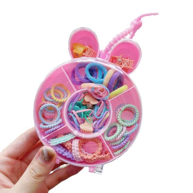 Cute Children's Princess Hair Accessories Set Colorful Leather Band Grab Clip with Head Rope Hair Ties for Girls in a Box