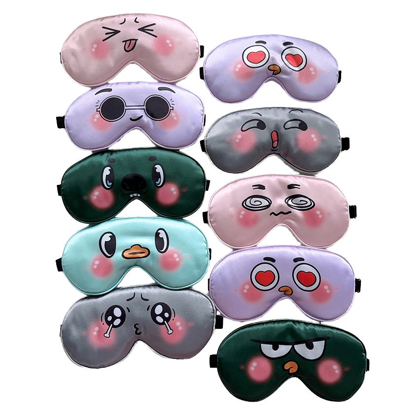Cute Colorful 100% Polyester Satin Heat-Transfer Printed Comfortable Blackout Formal Four Seasons Travel Sleep Mask Men Needle