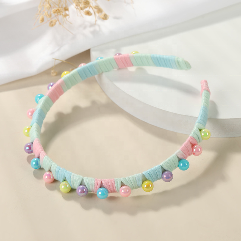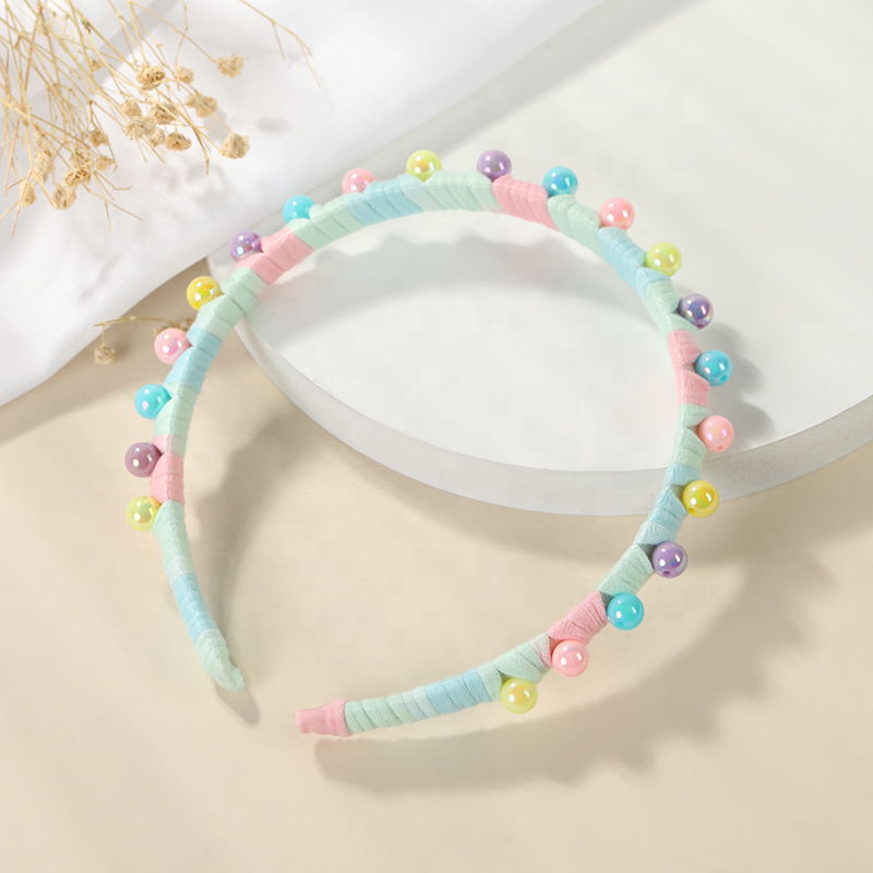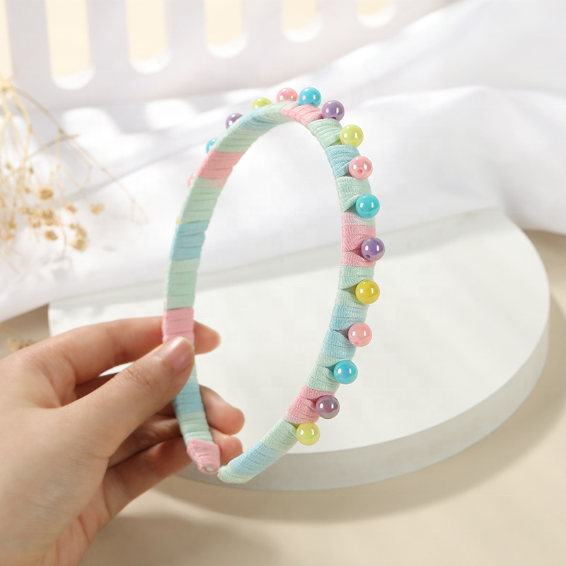 Cute Colorful Beads Hairband for Kids Girl Wrapped Headbands cute Headwear for Birthday Gift Wholesale