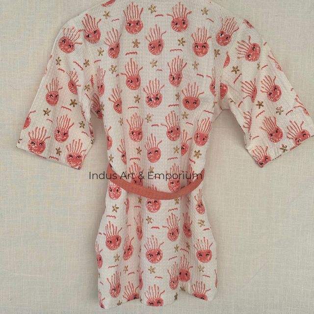 Cute Cotton Block Print Bathrobe for Kids Wholesale Hand Block Printed Cotton Waffle Cotton Kimono