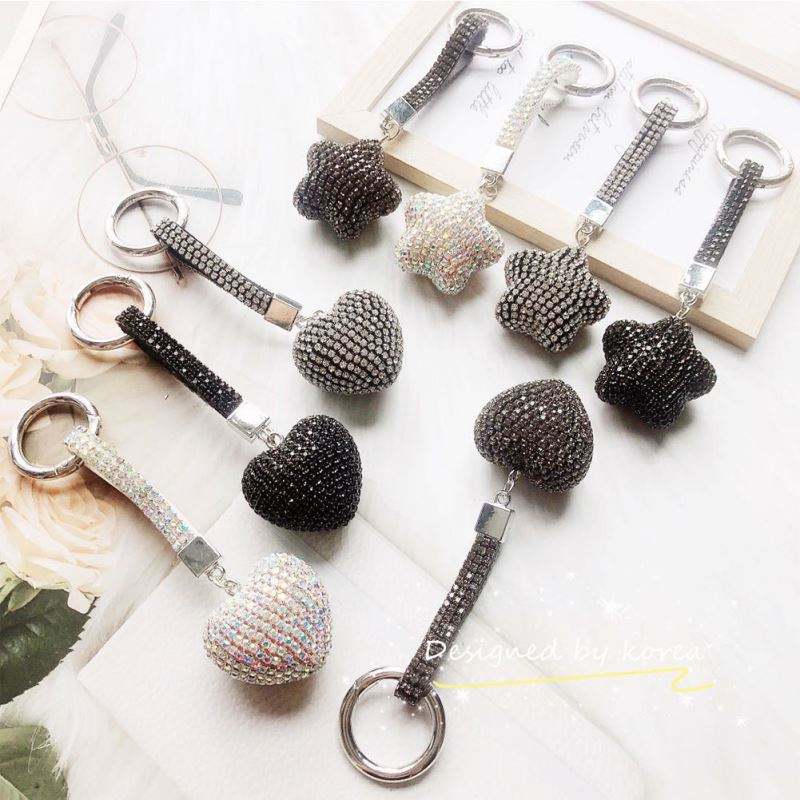 Cute Creative Cartoon Full, Diamonds Small Star Keychain Charm Crystal Rhinestone Diamond Heart Pendant Car Keychain/