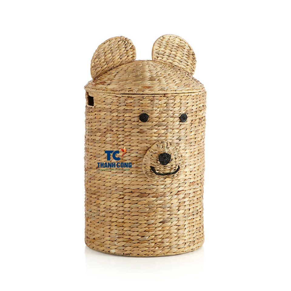 Cute Design Water Hyacinth Bear Baskets with two handles Decor Rattan Basket Kids Toy Storage Basket Eco Friendly