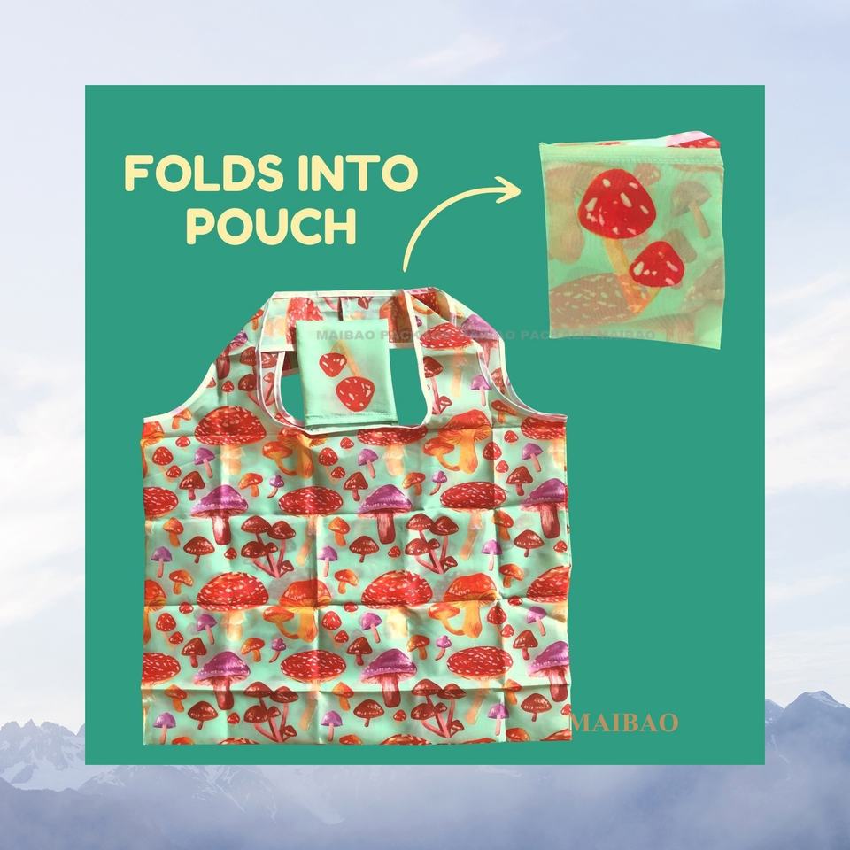 Cute & Eco-friendly Ripstop Nylon Grocery Bag Waterproof & Machine Washable Standard Reusable Foldable Shopping Pouch