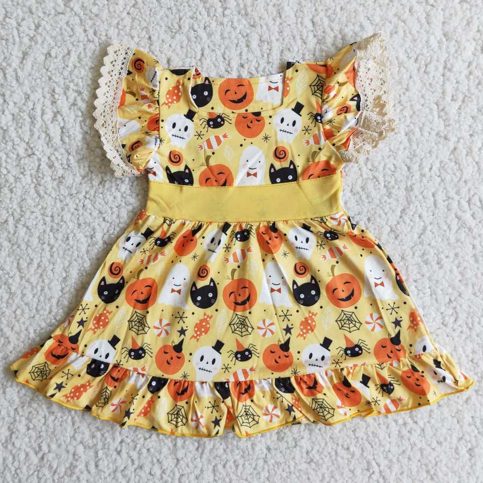 Cute Fashion Princess Girl Capped Sleeves Knit Dresses Summer Puffy Children Green Ruffle Dress