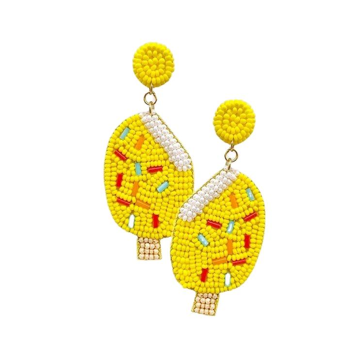 Handmade Red Popsicle Dangle Drop Earring for Fashionable Women Cute New Design Beaded Embroidery by Hiba Enterprises