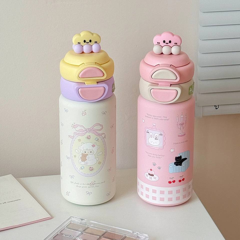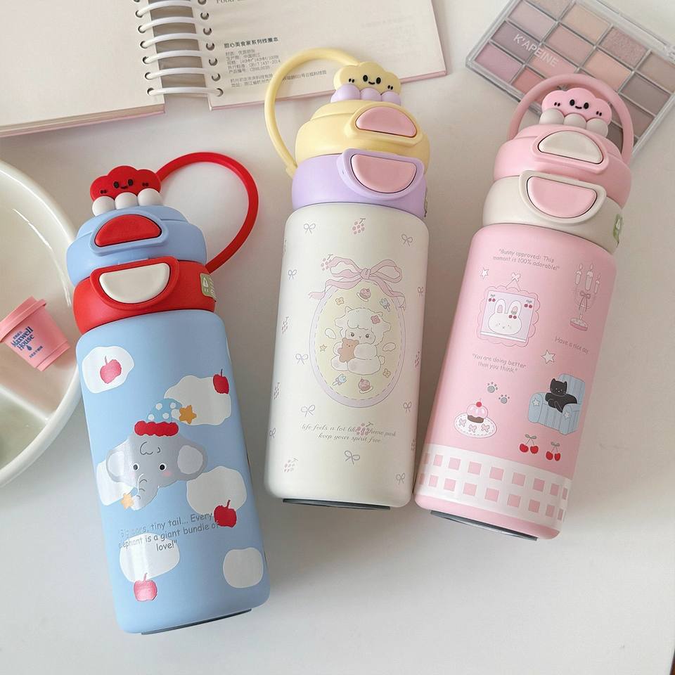 Cute Insulated Thermos Cup For Girls 500Ml Portable Water Bottle With Straw Back To School Gift For Students And Children