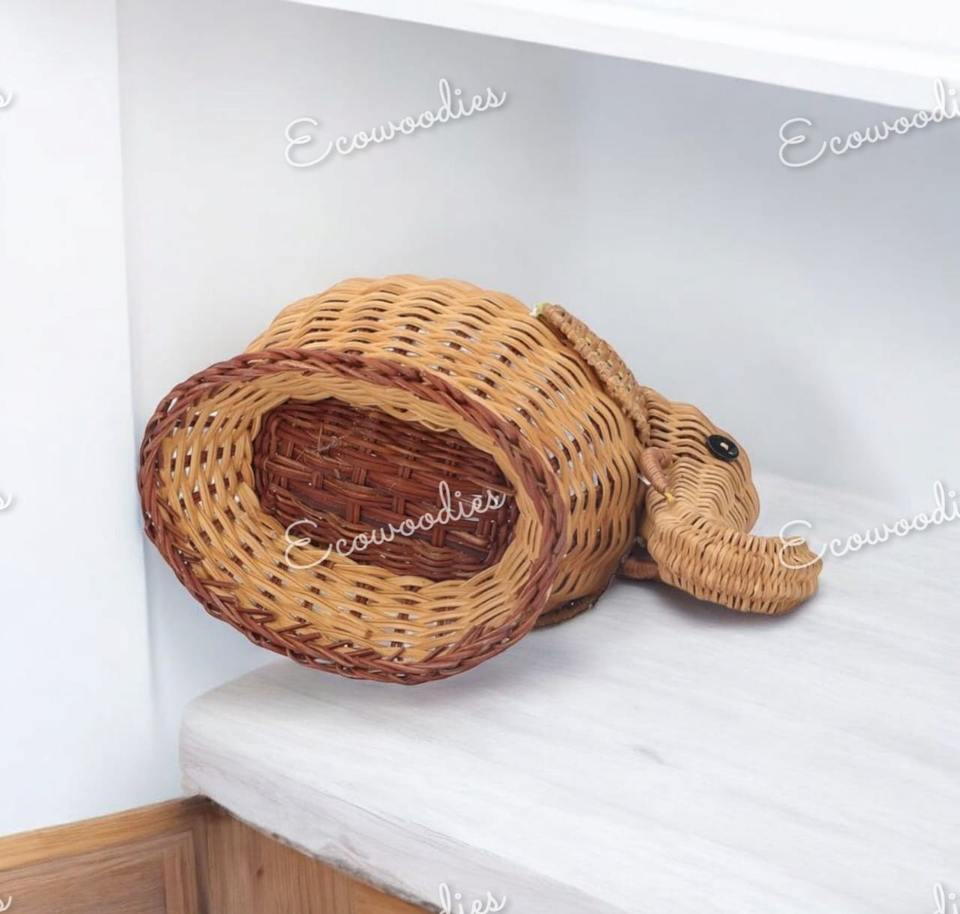 Cute Item Hand Woven Wicker Natural Rattan Kids Animal Cartoon Basket Storage Rattan Elephant Basket for Kids Toys Baskets