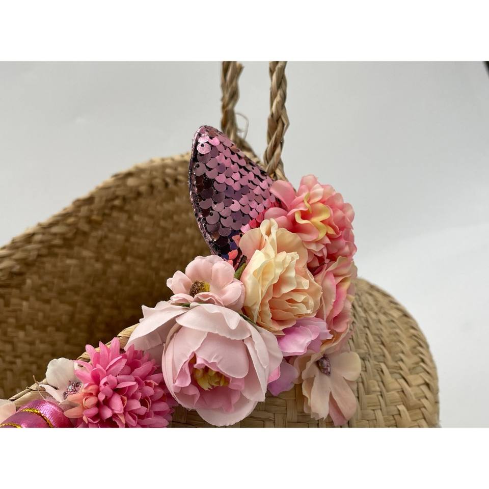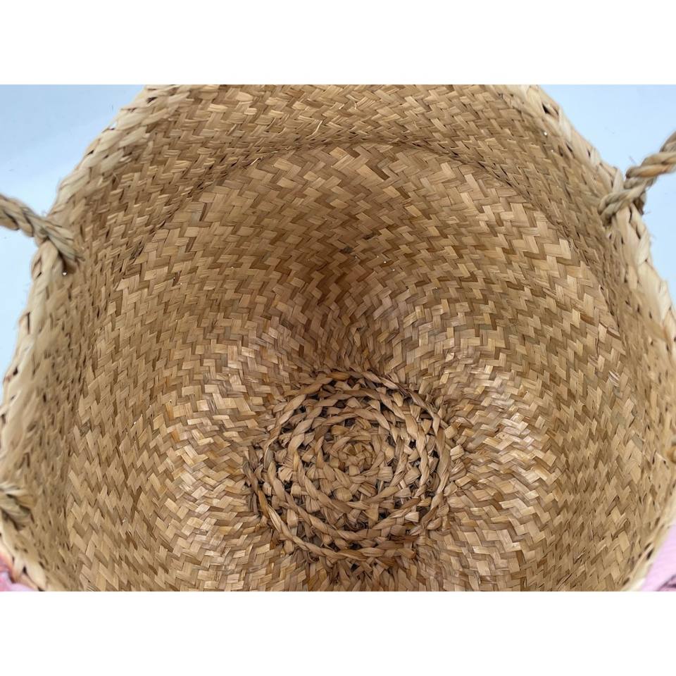 Cute Kids Bedroom Pink Flower Unicorn Natural Belly Basket Seagrass With Handle Handmade Home Decor