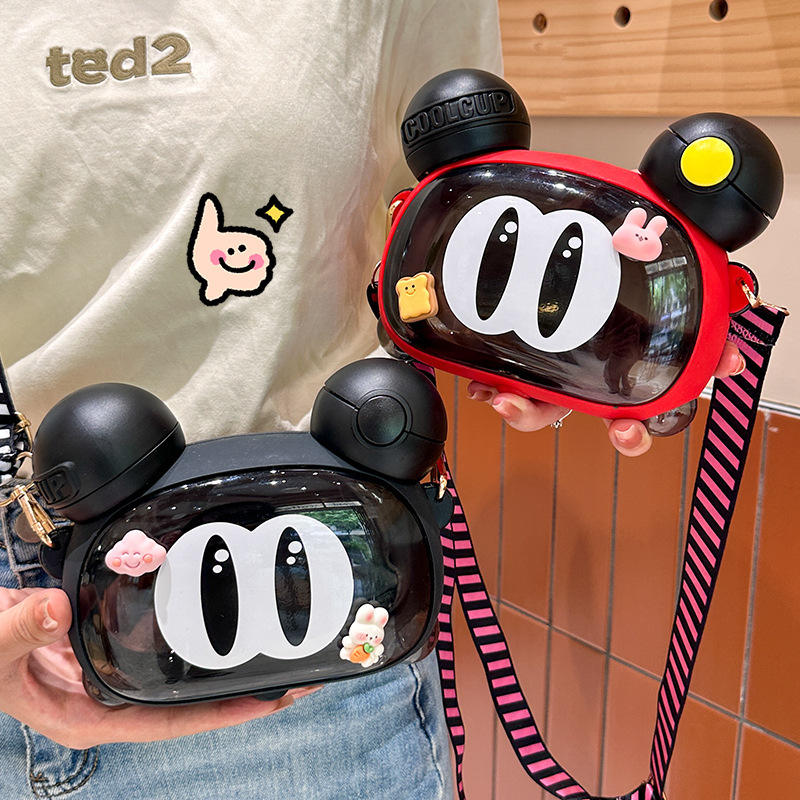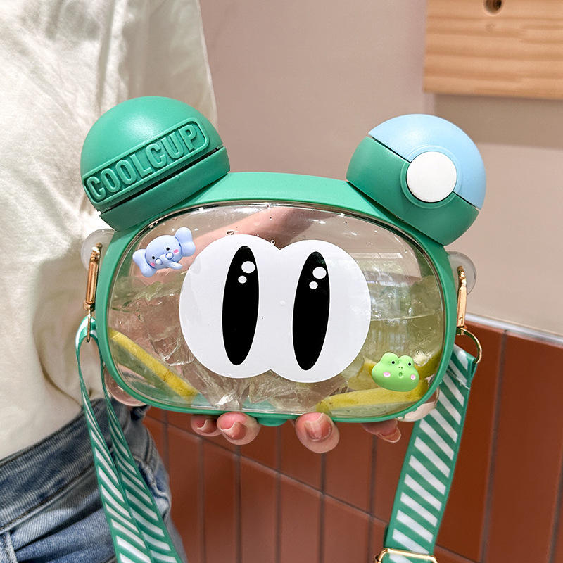 Cute Adults PP Material Eco-Friendly Water Cup with Double Straw Cartoon Design Boiling Water Safe Portable Bottle