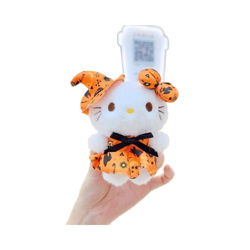 Cute Kitten Plush Toy Doll Floral Skirt Kitten with Halloween Pendant Soft Hanging Keychain for Kids Perfect Gift Idea
