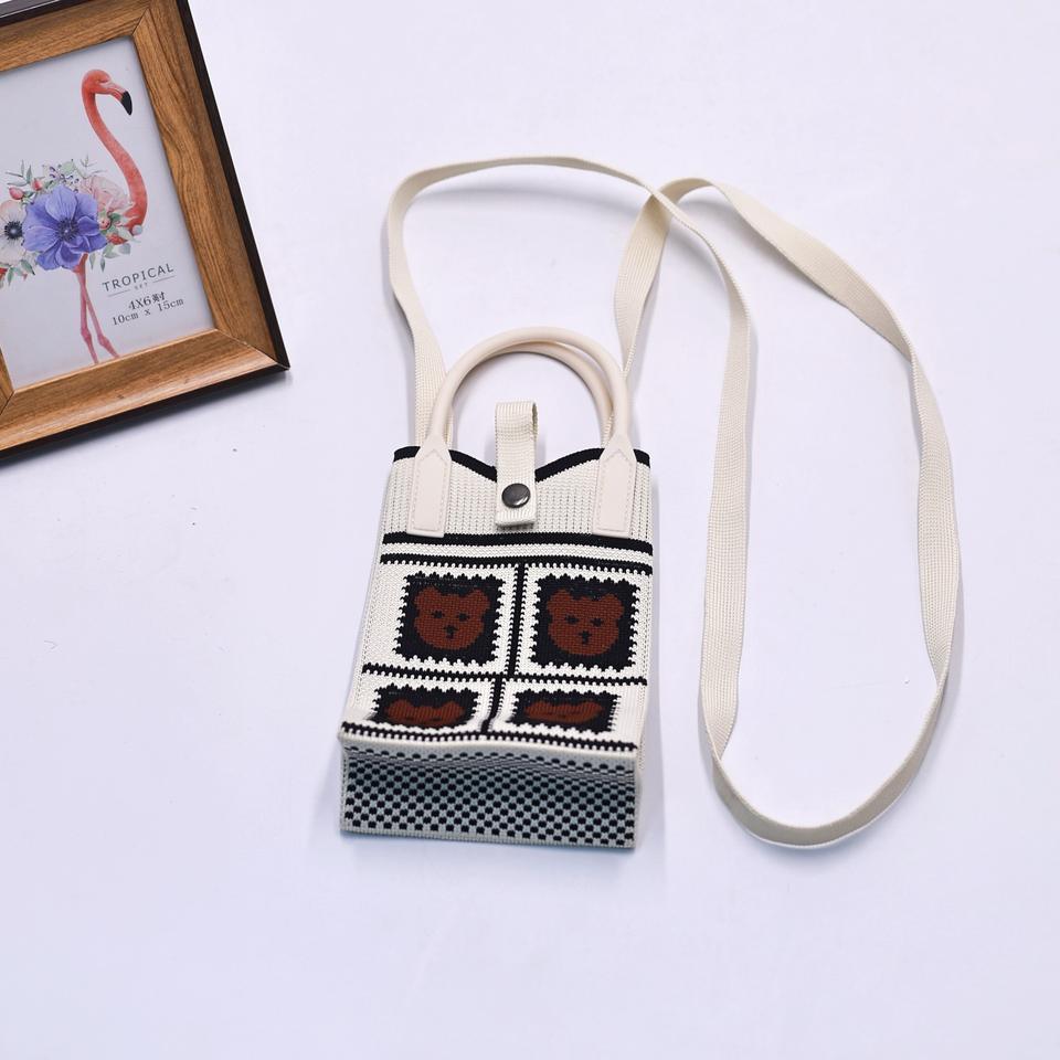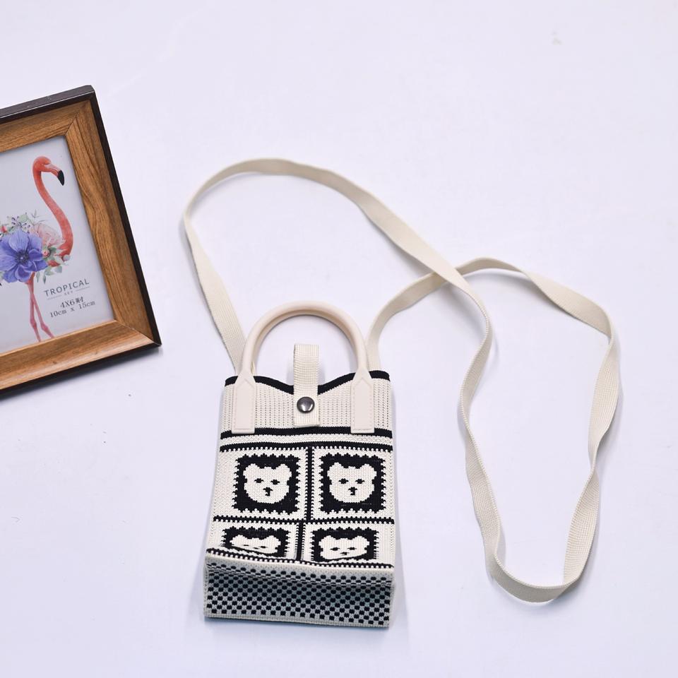 Cute Knit Mini Wrist Bag for Women Custom Knitted Crossbody Cell Phone Purse Cotton Zippered Handmade Packing Bag for Girls