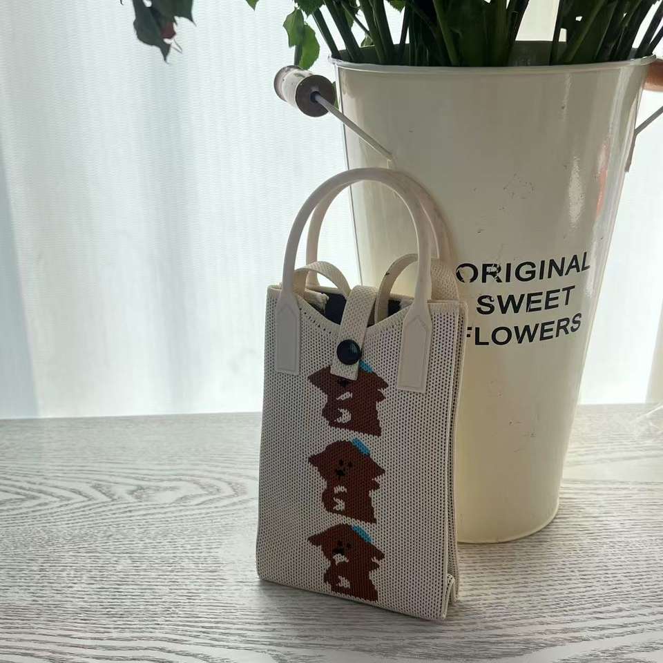 Cute Knit Mini Wrist Bag for Women Custom Knitted Crossbody Cell Phone Purse Zippered Closure Cotton Packing Bag for Girls