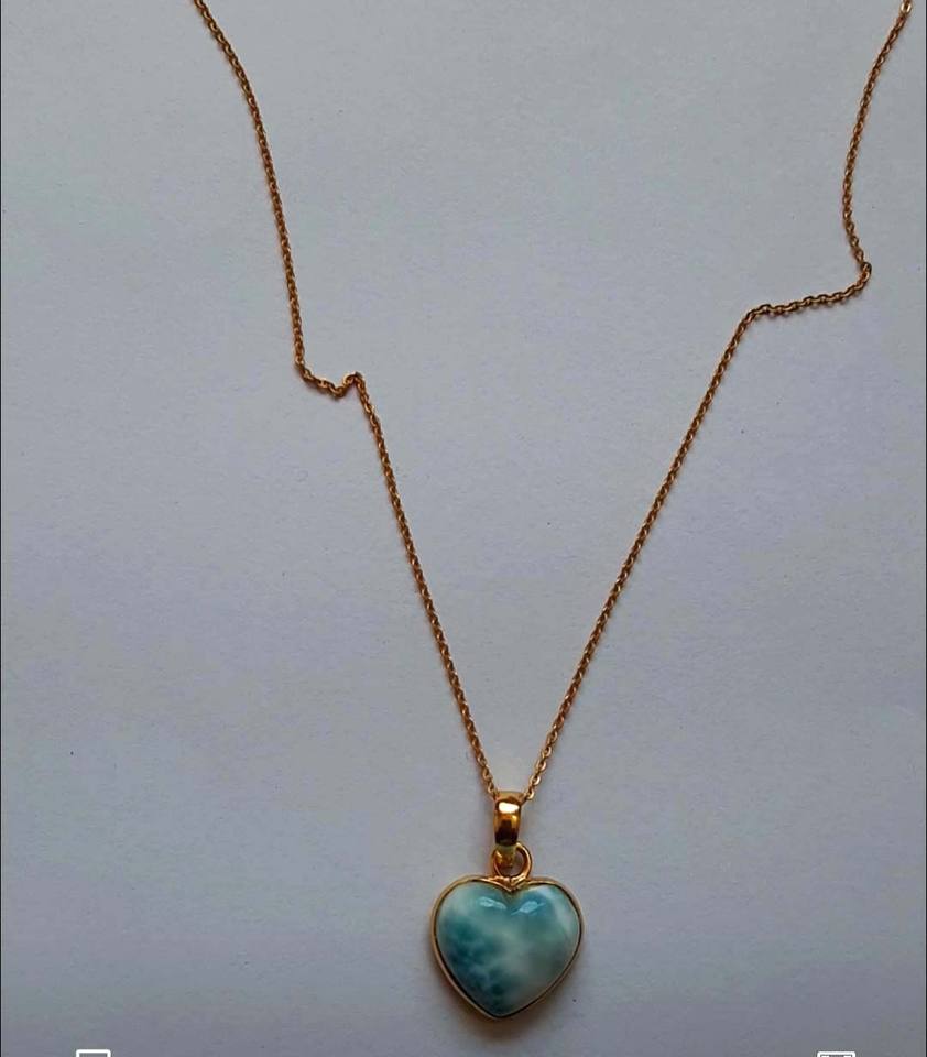 Cute Larimar 15mm Heart Shape Gems Pendant Best Quality 925 Sterling Silver Gold Rhodium Plated Bezel Setting 18" Chain Necklace