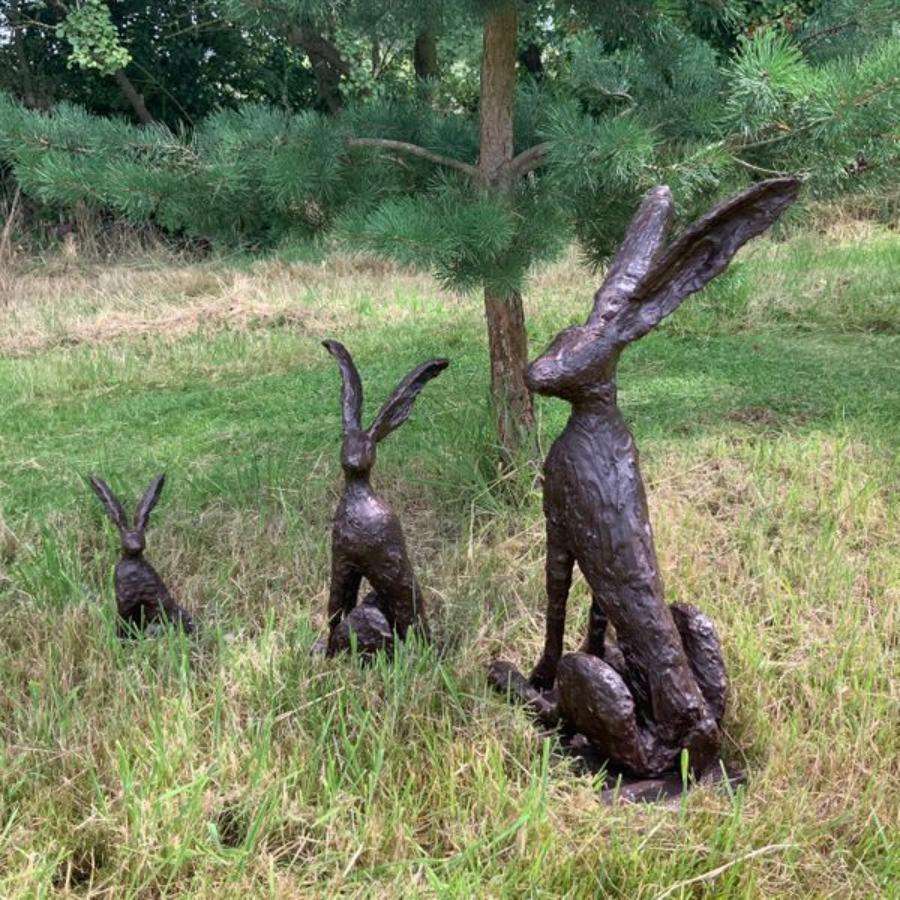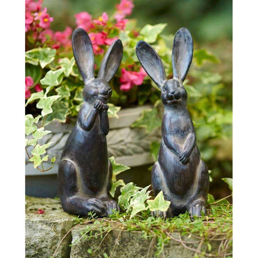 Cute Little Bronze Bunnies Sculpture Set Handcrafted Antique Easter Decoration Rabbit Pair Set Garden Sculpture Wholesale Price