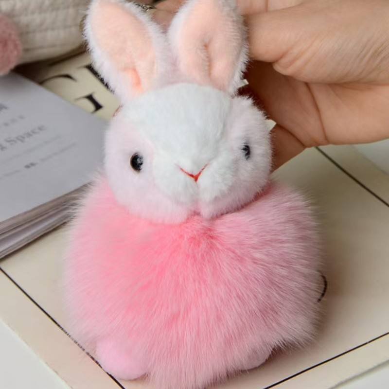 Cute Little Rabbit Cartoon Doll Design Copper LED Keychain Pendant Safe for Kids Plush Toy Bag Backpack Hairball Pendant