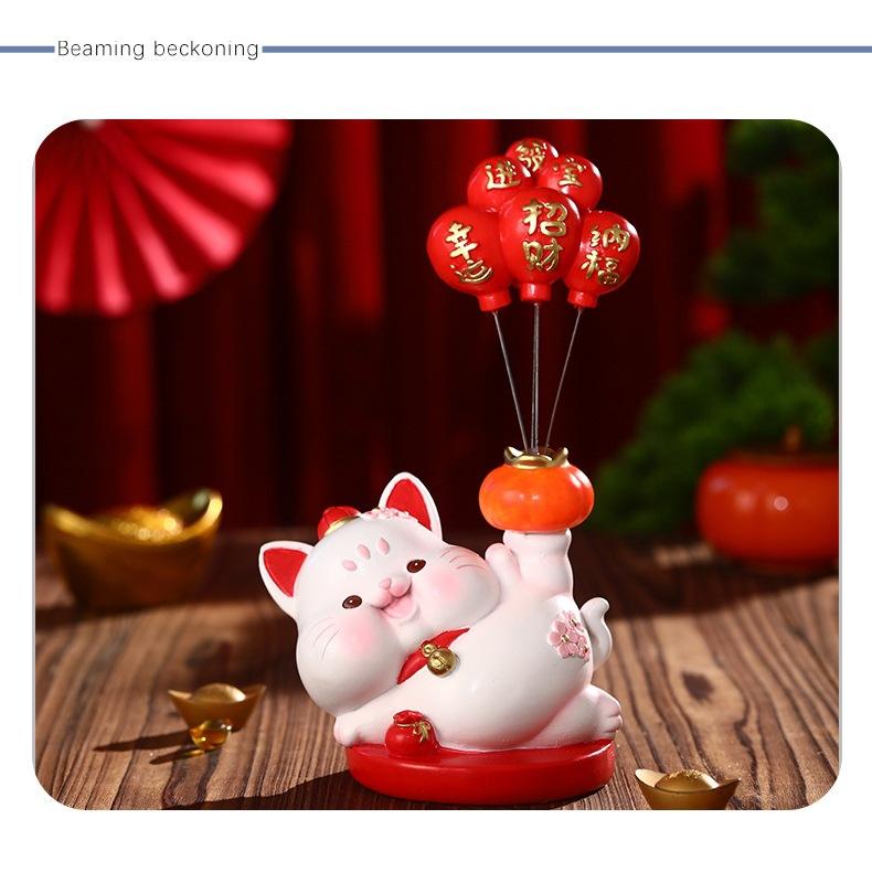 Cute Lucky Cat Epoxy Resin Folk Art Figurine Entrance Decorations Office Living Room Desktop Home Decor Ornaments Housewarming