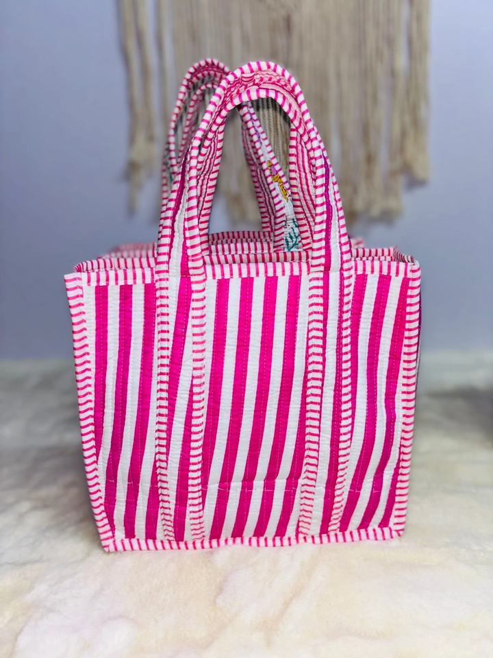 Item:Cotton Multi Pink Patch Tote Handbag