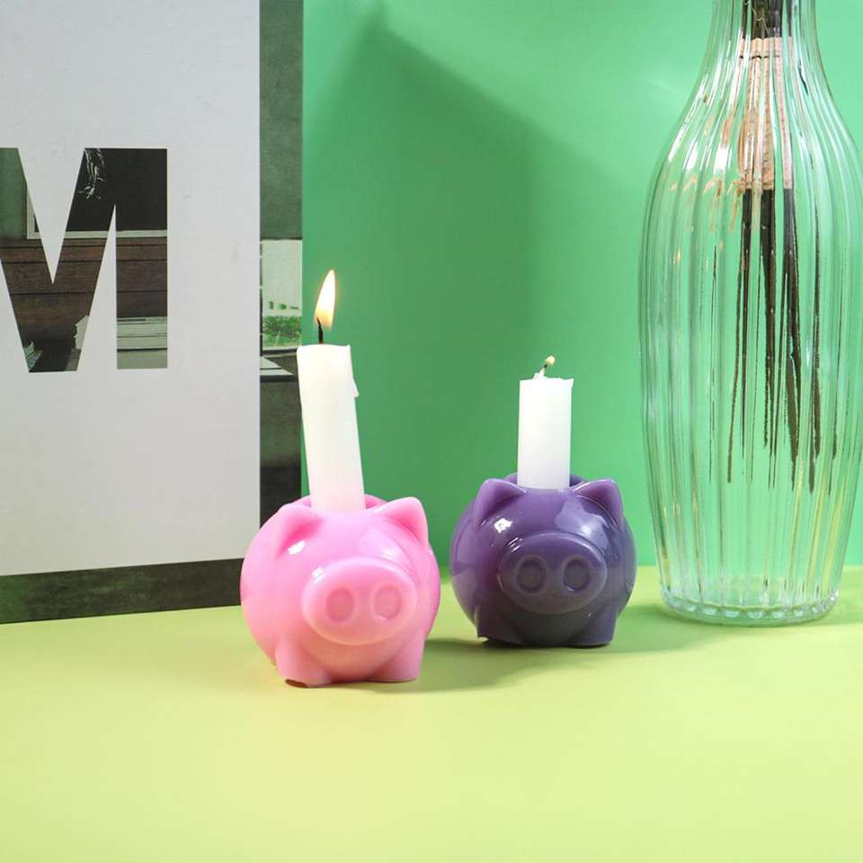 Cute Pig Candlestick Candle Aromatherapy Gypsum Resin Candle Silicone Mold