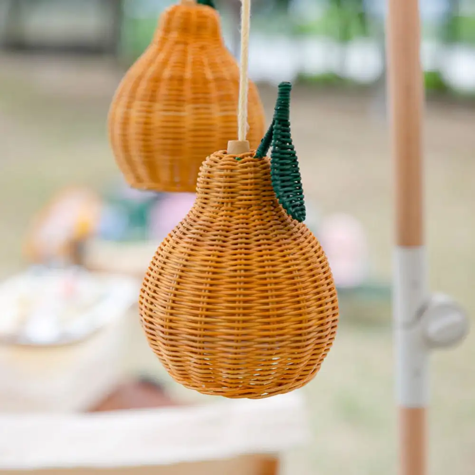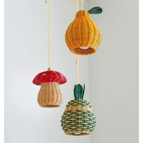 Cute Pineapple Rattan Lampshade Handcrafted Light Fixture for Nursery, Playroom, or Baby Room Fruit Shaped Rattan