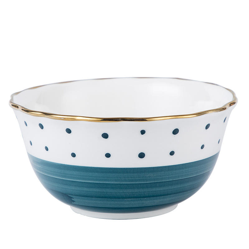 Cute Polka Dots Golden Wavy Edge Green Ceramic Bowl Ceramic Dinner Plate