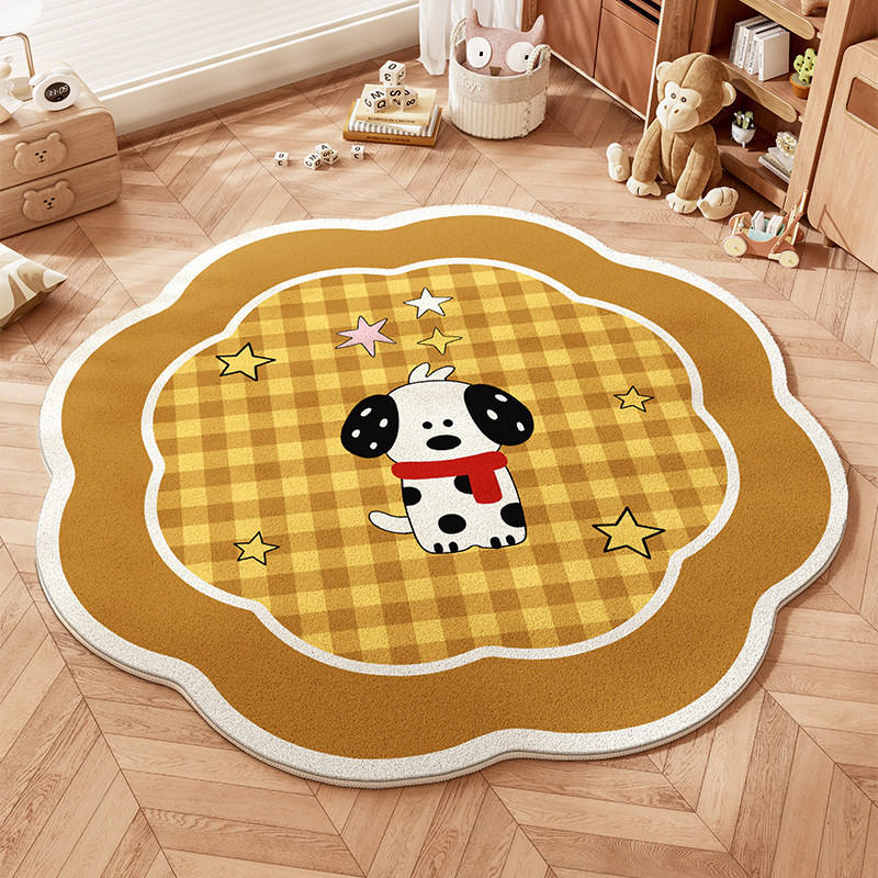 Cute Puppy Kids Floor Mat Novelty Shape Soft Plush Stain Resistant Crawling Mat For Bedroom Living Room