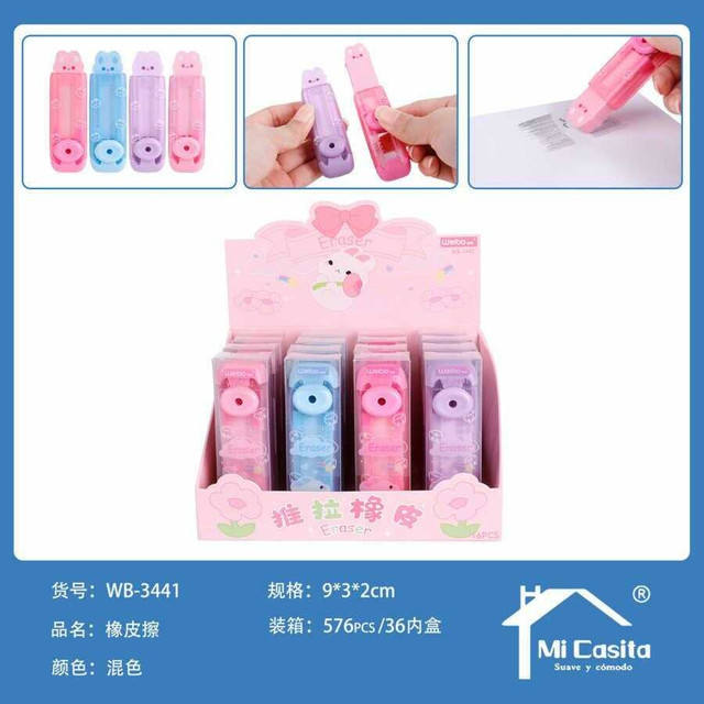 Cute Rabbit Cartoon Eraser 576 Pieces Per Box Push-Pull Style with Rubber PP Material Featuring Fruit Shoes Animal Patterns
