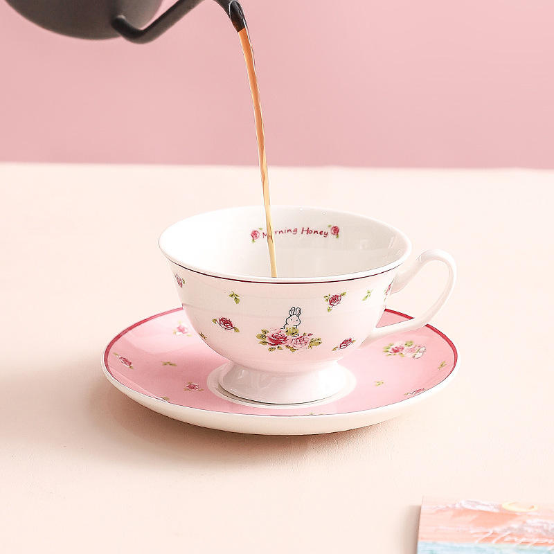 Cute Rabbit Design Coffee Cup and Saucer pink Tea Gifts Set for Women
