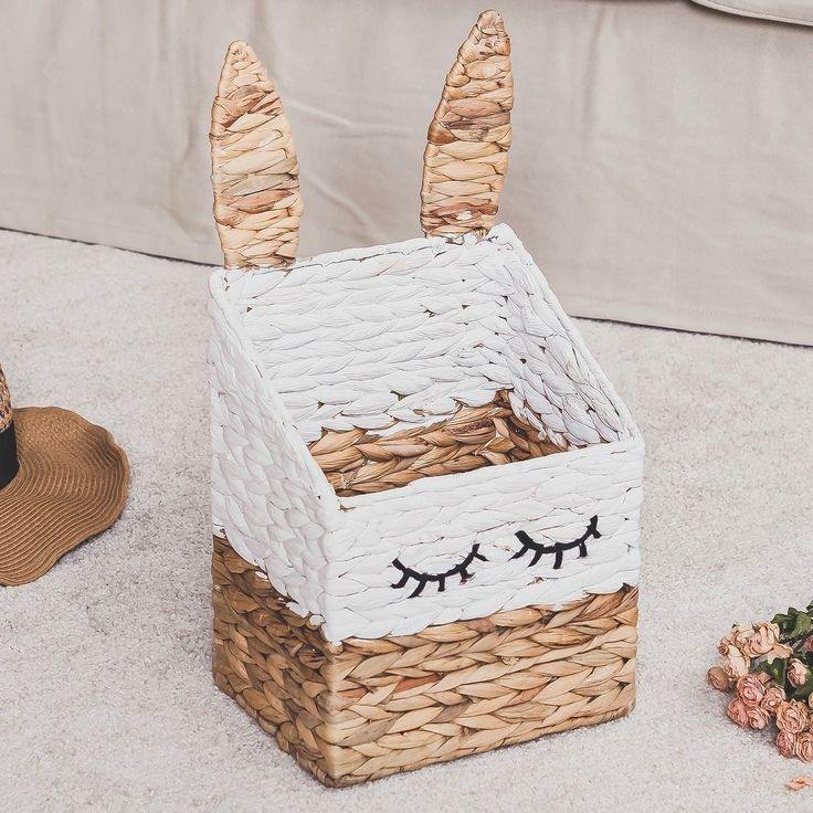 Cute Rabbit Design Foldable Water Hyacinth Storage Basket Eco-Friendly Cloth Boxed Carton for Clothing Plants Sustainable Circle
