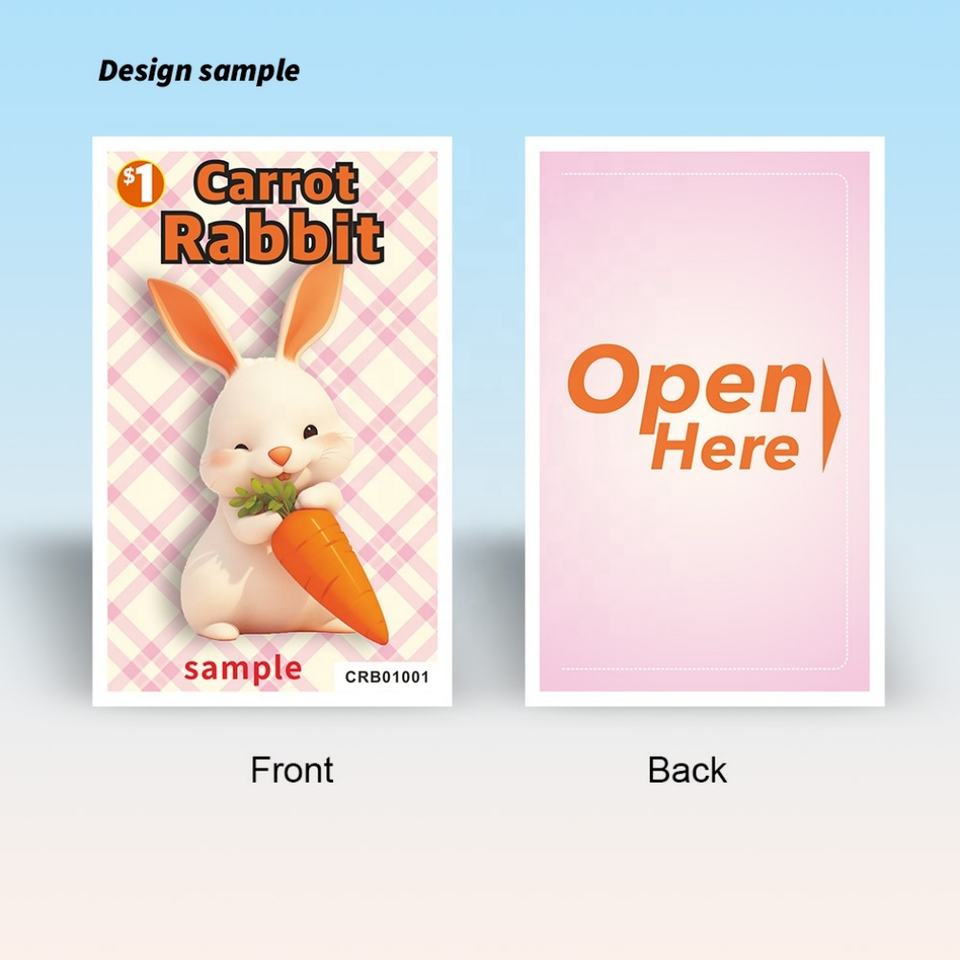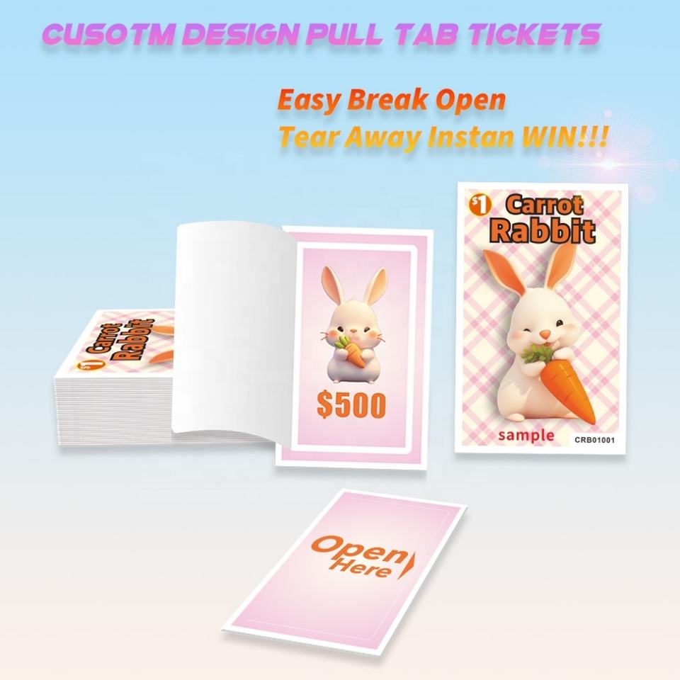 Cute Rabbit Design Sample Cheap Wholesale Quick Custom Pull Tabs Lottery Tickets with High Security Variable Data Printing