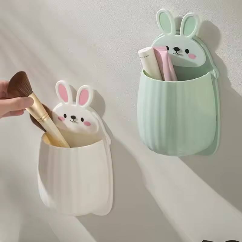 Cute Rabbit Storage Rack No Punching Marking Required Makeup Brush Storage Box Bathroom Wall Mounted Toothbrush Holder