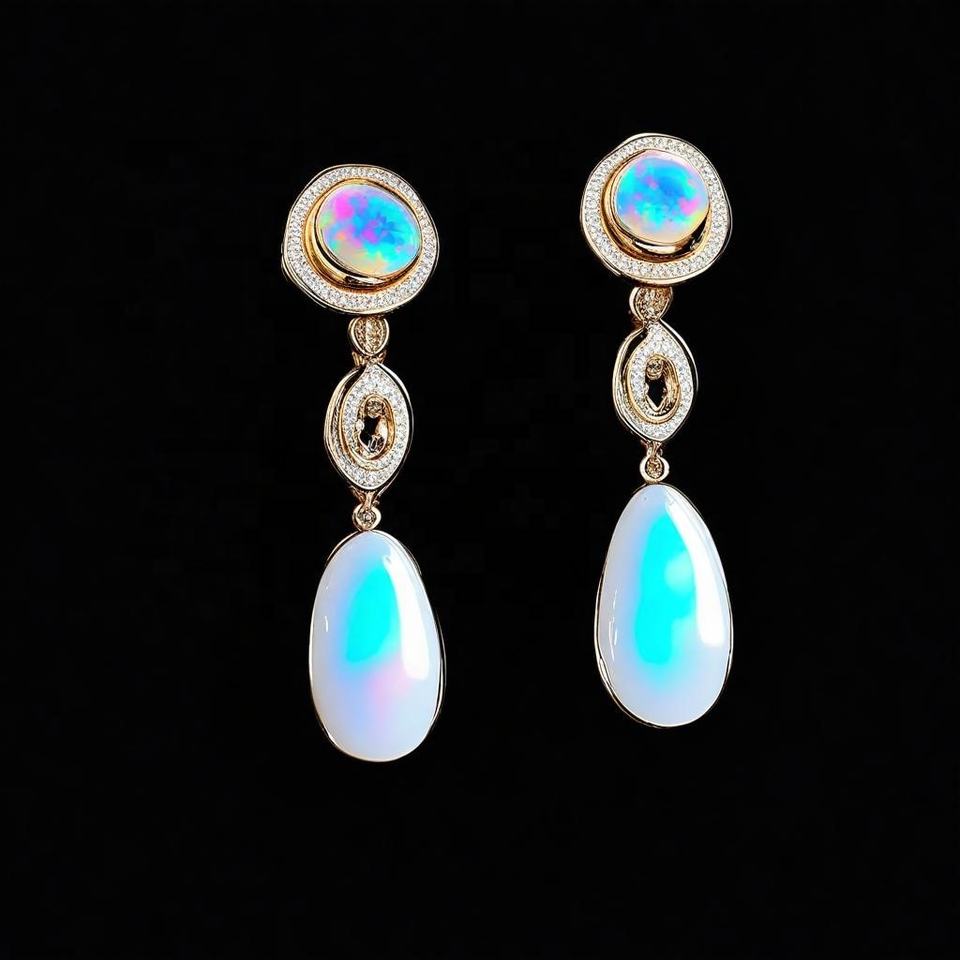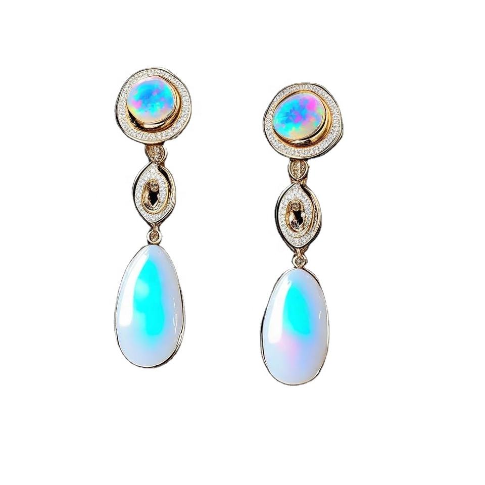 Cute Round Silver Earrings With White Fire Opal Drop Small Stone Dangle for Women and Girls Fashion Drop Earrings
