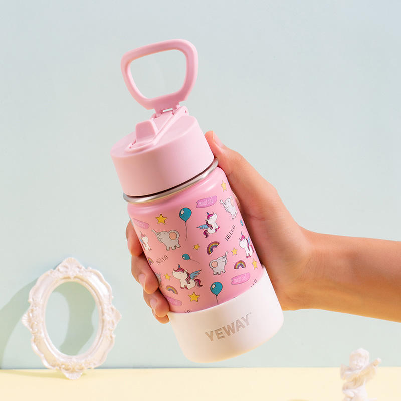 Cute Safe Easy Grip Kids Insulated Stainless Steel Tumbler for Family Outings With Straw Lid